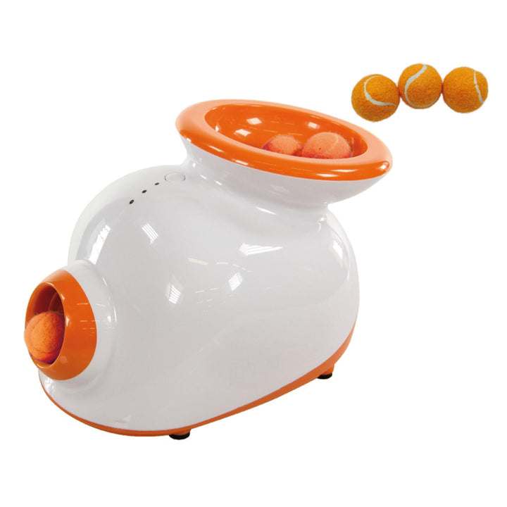 Trainieren und Spielen mit Ihrem Hund für drinnen und draussen! Der Pointer Ballwurfautomat übernimmt von jetzt an für Sie das Bällewerfen. Ihr Hund kennt keine Langeweile mehr! Schon nach kurzer Zeit werden Sie erleben, wie Ihr Hund das Spielgerät selber Bettenienen kann. Er lässt den Ball einfach in den Trichter fallen: Pointer saugt ihn an - und schiesst ihn wieder hinaus. Der Hund kann dem Ball nachjagen und diesen von neuem in den Trichter legen. So trainiert Ihr Hund seine Kondition und powert sich gleichzeitig aus. Einstellbare Wurfweite: 3, 6 oder 9 Meter.