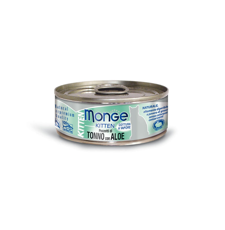 Lebensphase: Kitten Zusammensetzung: Thunfisch (Euthynnus affinis) 50%, Aloe 5%, Reis, F.O.S. (Fructo-Oligosaccharide). Analytische Bestandteile: Rohproteine 13,0%, Rohöl und Fette 1,0%, Rohfaser 1,0%, Rohasche 2,0%, Feuchtigkeit 82,0%.