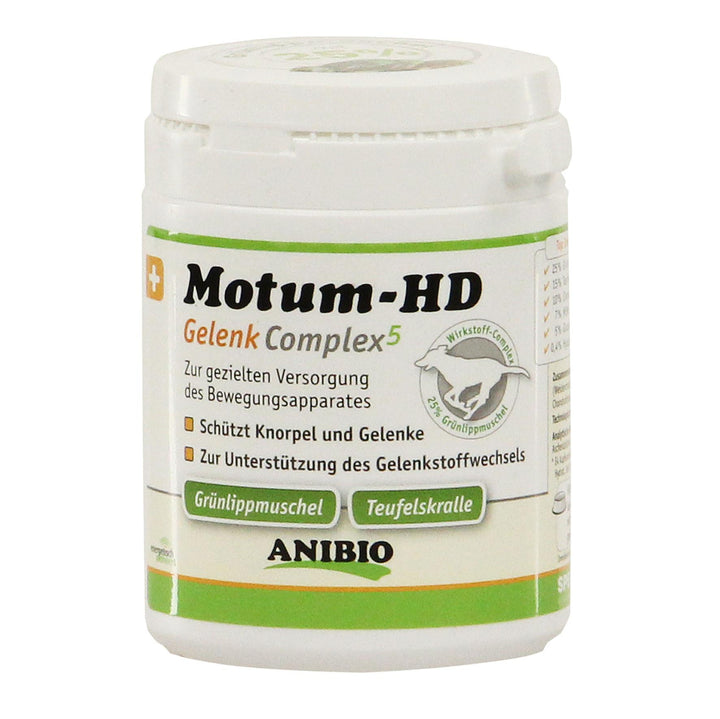 Anibio Motum-HD Gelenk Complex5 ist eine einzigartige Kombination aus Nähr- und Wirkstoffen, diese bewirken eine Verbesserung der Beweglichkeit und Leistungsfähigkeit, sowie eine Elastizitäts- und Stabilitätssteigerung der Wirbelsäule. Auch die Belastbarkeit der Gelenke wird verstärkt, zusätzlich dazu schützt das Motum-HD Gelenk Complex5 die Knorpel und Gelenke und unterstützt den Gelenkstoffwechsel. So erhält Ihr Liebling seine natürliche Bewegungsfreude zurück, wodurch sich auch seine Lebensqualität verbessert.