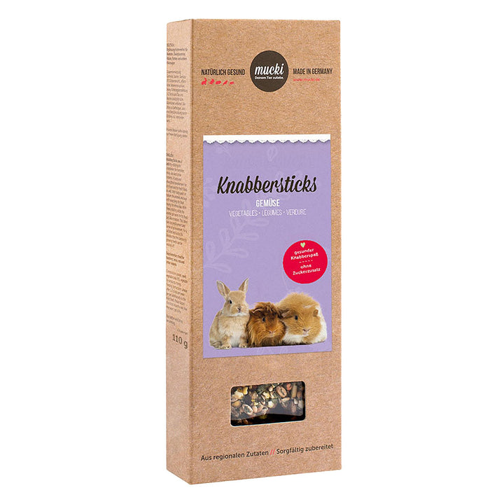 Die Knabbersticks von Mucki sind Alleinfuttermittel, welche für Nager aller Altersgruppen geeignet sind.