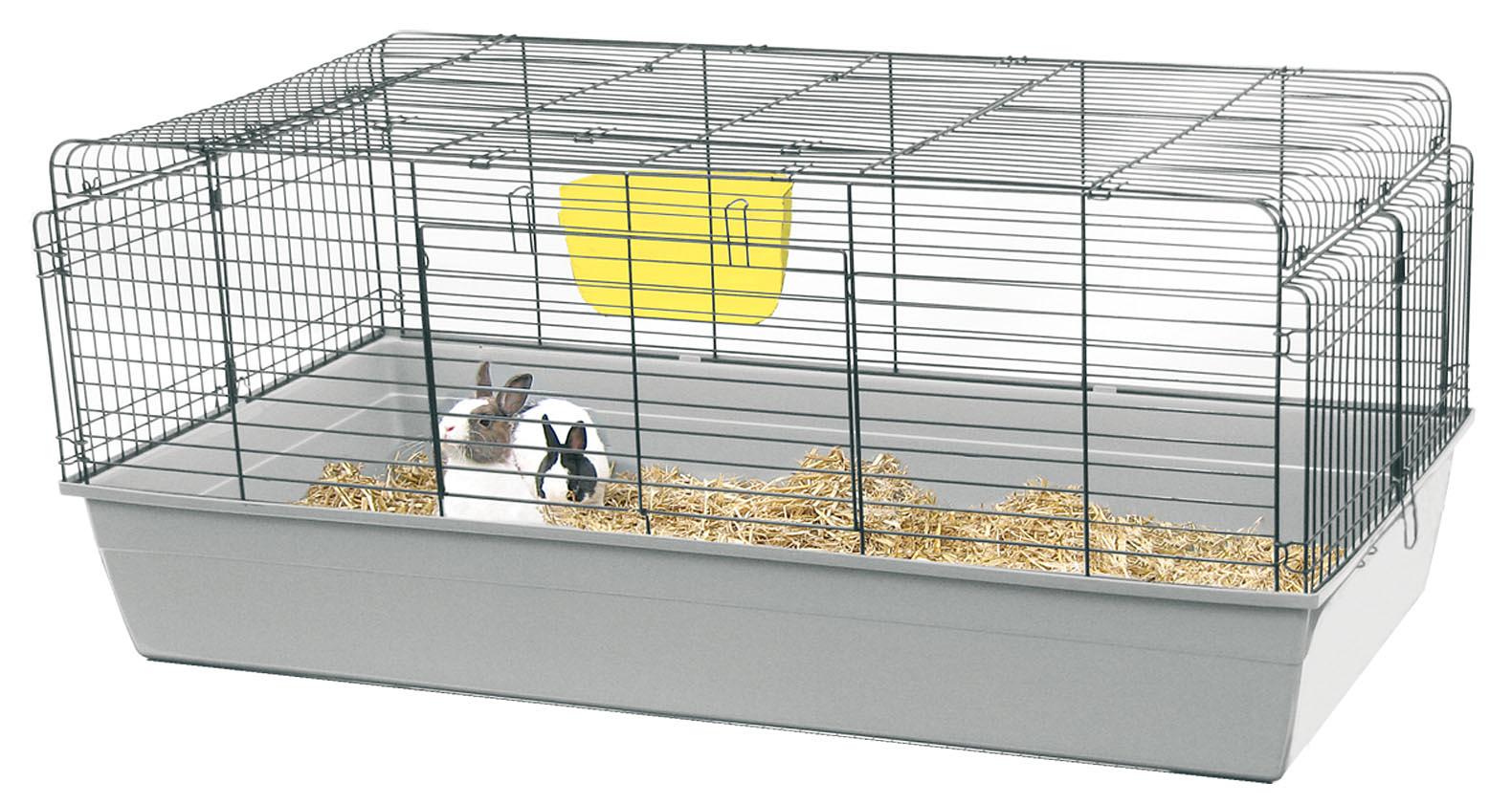Das swisspet Nagerheim Gigant ist geeignet für Meerschweinchen und Kaninchen. Ausgestattet ist das zerlegbare Zuhause für Ihre Haustiere mit einer Heuraufe und einer grauen Schale mit abnehmbaren Rädern.