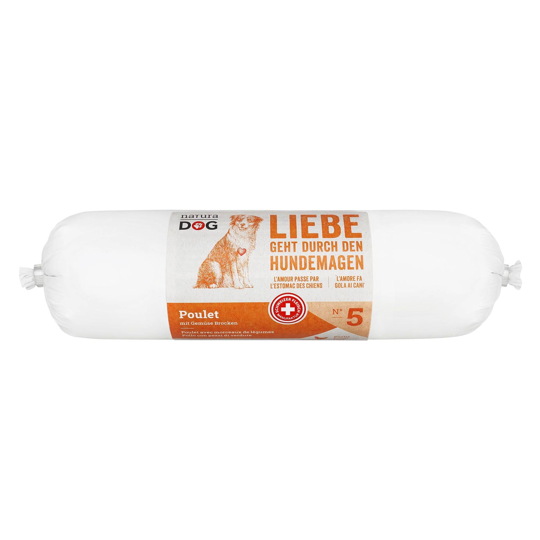 - Praktische, platzsparende Verpackung: Ein Grossteil der Produkte von naturaDog ist in einer praktischen Wursthülle eingepackt, dadurch lassen sich unangenehme Gerüche und vor allem der Abfall deutlich reduzieren.