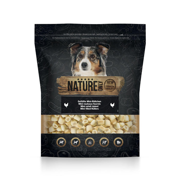 Gönn deinem Liebling eine Pause vom Alltag und bereite ihm eine leckere Überraschung mit den Nature Only Mini Röllchen, gefüllt! Diese knusprigen Snacks für Hunde sind eine grossartige Möglichkeit, ihm zwischendurch eine Freude zu machen! Wenn mal wieder „Naschenzeit“ ist, dann bist du hier goldrichtig! :)