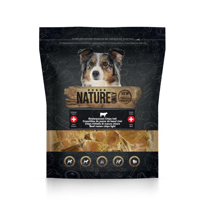 Verwöhnen Sie Ihren Liebling mit den leckeren Rinderpansen-Chips von Nature Only - der extra Knusper-Kick für Ihren Hund! Unsere knackigen Snacks sind nicht nur lecker, sondern auch gesund und natürlich. Ein perfekter Leckerbissen für den besonderen Anlass, der von jedem Hundefreund geschätzt wird. Macht Ihren Vierbeiner glücklich – ganz ohne schlechtes Gewissen!