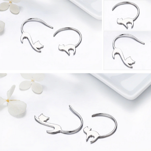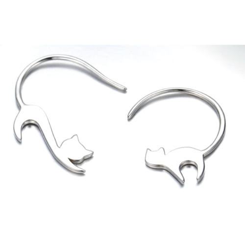 Eins ist jetzt schon klar: mit diesen tollen Ohrsteckern wirst Du bewundernde Blicke und nette Kommentare ernten! Aber dieses Paar Ohrringe in Form von sich dehnenden Katzen sind auch einfach allerliebst! Das Paar besteht aus zwei kleinen Kätzchen, die sich in Form und Größe etwas von einander unterscheiden, aber so auch den besonderen Twist in das Schmuckstück bringen. Angelegt werden die Ohrringe über den langen Schwanz der Katzen. Diesen brauchst Du Dir nur durch Dein Ohrloch ziehen und schon baumeln die kleinen Katzen fröhlich umher. Aufgrund der Creolen-Form lassen sich die Ohrringe vielseitig kombinieren. Ob schick oder sportlich - die kleinen Katzen machen sich überall gut zu. Und dank des hochwertigen Materials aus 925er Sterling Silber ist eine Allergie bei Modeschmuck ausgeschlossen.