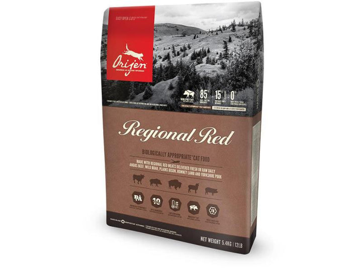 Orijen Regional Red ist ein biologisch angemessenes Alleinfuttermittel für Katzen jeden Alters. Dieses Katzenfutter besteht hauptsächlich aus frischem Angusrind, Wildschwein, Freilandbison, Romney Land und Yorkshire Schwein. Mit diesem Trockenfutter spiegelt Orijen die Frische und Vielfalt von Fleisch wider, wie es Katzen von Natur aus fressen würden.
