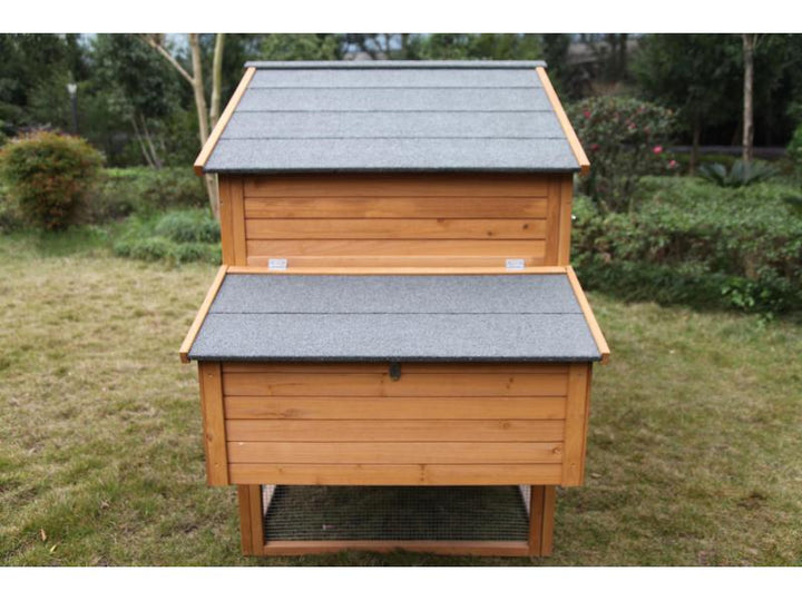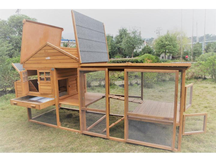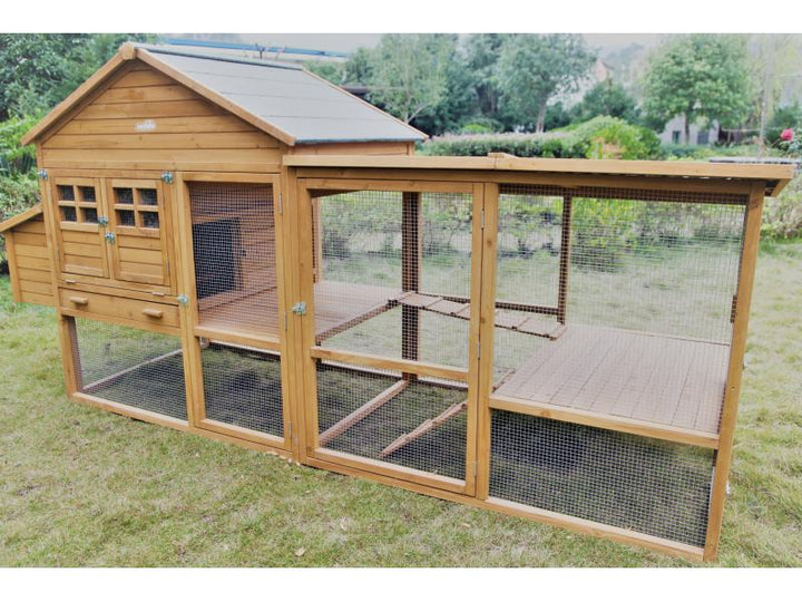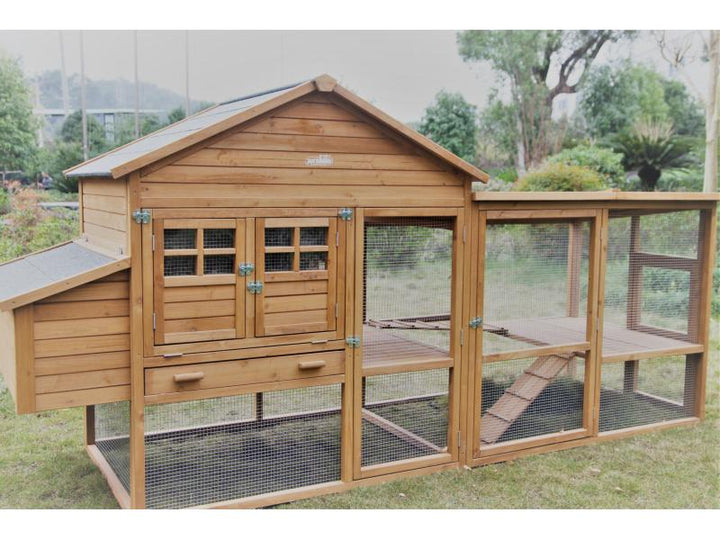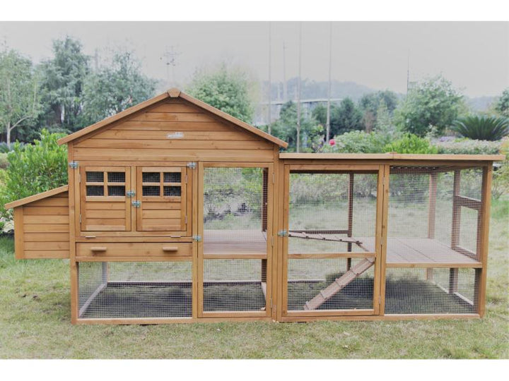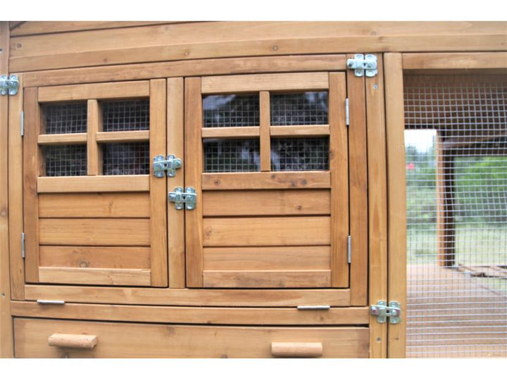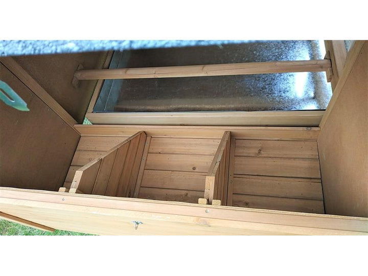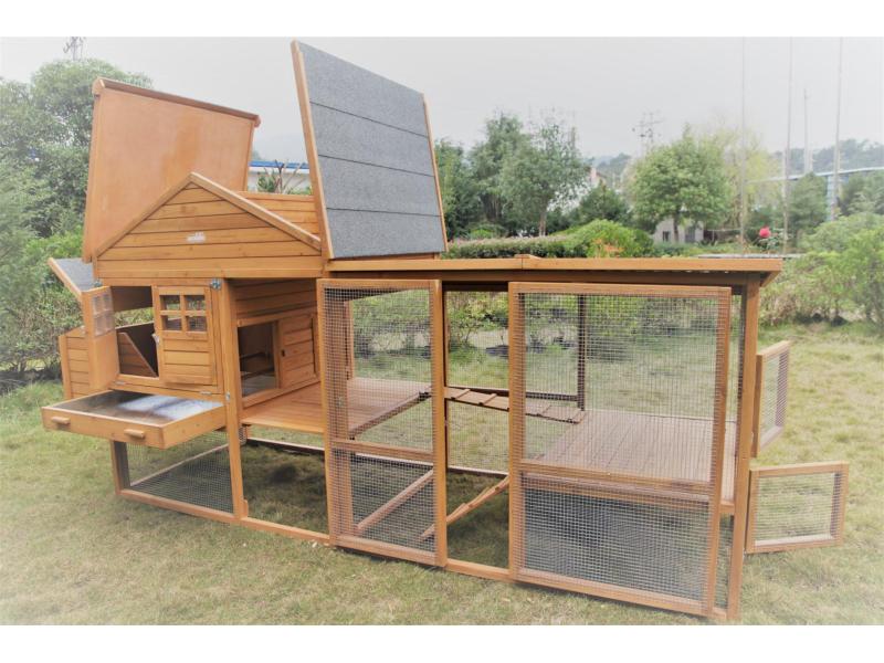 - Isoliertes Haupthaus mit Reinigungsschublade für Einstreu und warme Rückzugsmöglichkeit