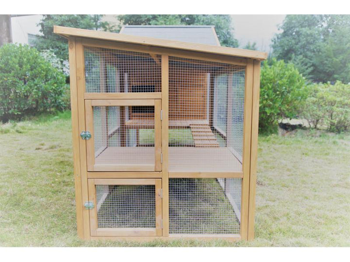 - Gedeckter, wettersicherer Auslauf L 150 x B 100 x H 120cm, Gesamt-Abmessungen: L 290 x B 100 x H 160cm, 108kg