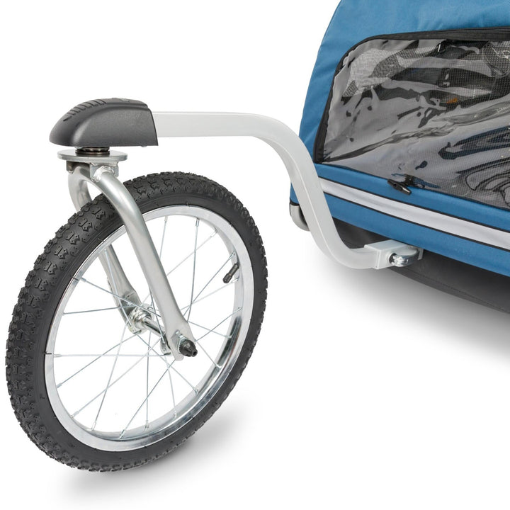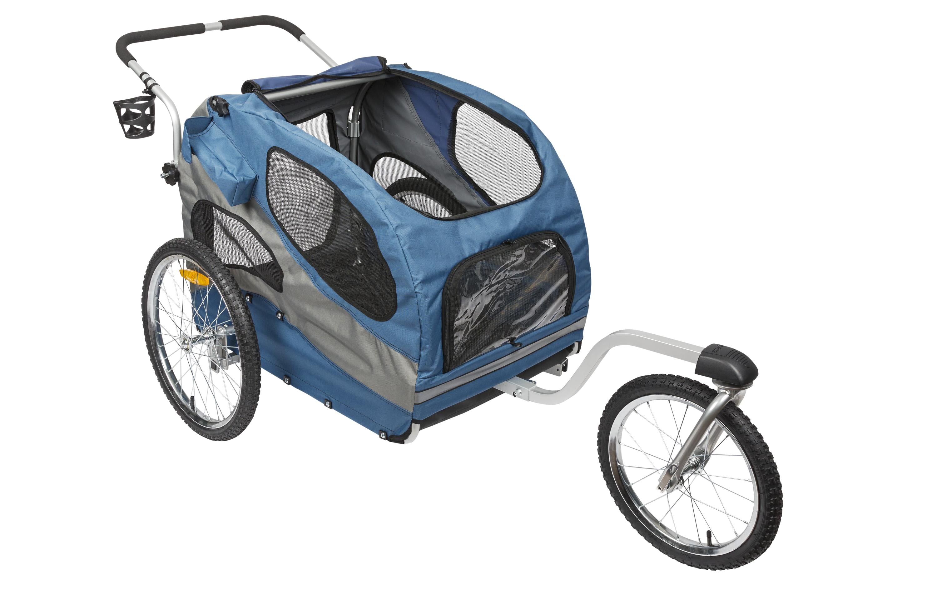 Der Solvit Umbausatz Jogger verwandelt Ihren Fahrradanhänger Solvit Trailer in einen vielseitigen, geländegängigen Wagen für Haustiere. Möchten Sie einen langen Spaziergang machen oder joggen, aber nicht sicher, ob Ihr Haustier es bis zum Ende schaffen kann? Verwandeln Sie den Fahrradanhänger Solvit Trailer in einen Haustierwagen mit unserem einfach zu installierenden Umbausatz – inklusive Lenker, 12-Zoll-Schwenkrad, Feststellbremse und Flaschenhalter. Konvertiert von Trailer zu Haustierwagen und zurück in weniger als zwei Minuten