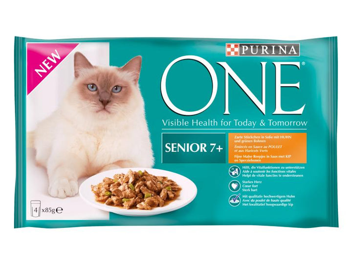 Das Nassfutter von Purina überzeugt auch Ihren vierbeinigen, schon etwas älteren Feinschmecker mit seinem unwiderstehlichem Geschmack. Die Mahlzeiten enthalten feine Stückchen in Gelee mit Gemüse und schmecken köstlich. Wertvolle Vitamine und Mineralstoffe sind ebenso enthalten wie etwa Vitamin E, ein Antioxidans, das Ihrer Katze helfen kann, ihre starken, natürlichen Abwehrkräfte zu bewahren. Ballaststoffe unterstützen ein gutes Verdauungssystem und Omega 3 und 6 Fettsäuren sowie Zink sind wichtig für eine gesunde Haut und ein schönes Fell.