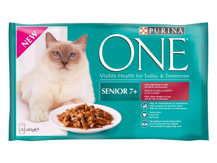 Das Nassfutter von Purina überzeugt auch Ihren vierbeinigen, schon etwas älteren Feinschmecker mit seinem unwiderstehlichem Geschmack. Die Mahlzeiten enthalten feine Stückchen in Gelee mit Gemüse und schmecken köstlich. Wertvolle Vitamine und Mineralstoffe sind ebenso enthalten wie etwa Vitamin E, ein Antioxidans, das Ihrer Katze helfen kann, ihre starken, natürlichen Abwehrkräfte zu bewahren. Ballaststoffe unterstützen ein gutes Verdauungssystem und Omega 3 und 6 Fettsäuren, sowie Zink sind wichtig für eine gesunde Haut und ein schönes Fell.