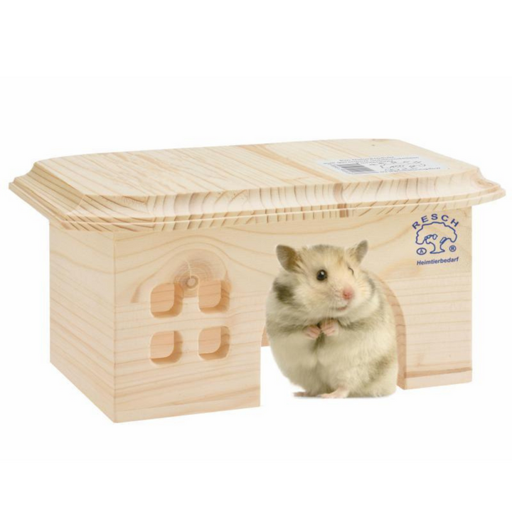 Nicht nur für Hamster, auch für Mäuse und Ratten eignet sich der Hamster-Bungalow von Resch als kuscheliger Unterschlupf. Das Häuschen im Bungalow-Design verfügt über ein Fenster und einen artgerecht grossen Eingang. Es besteht aus massivem Fichtenholz und wird fertig zusammengebaut geliefert. Das unbehandelte Fichtenholz ist garantiert frei von jeglichen schädlichen Stoffen und kann auch von Ihren Haustieren angeknabbert werden.