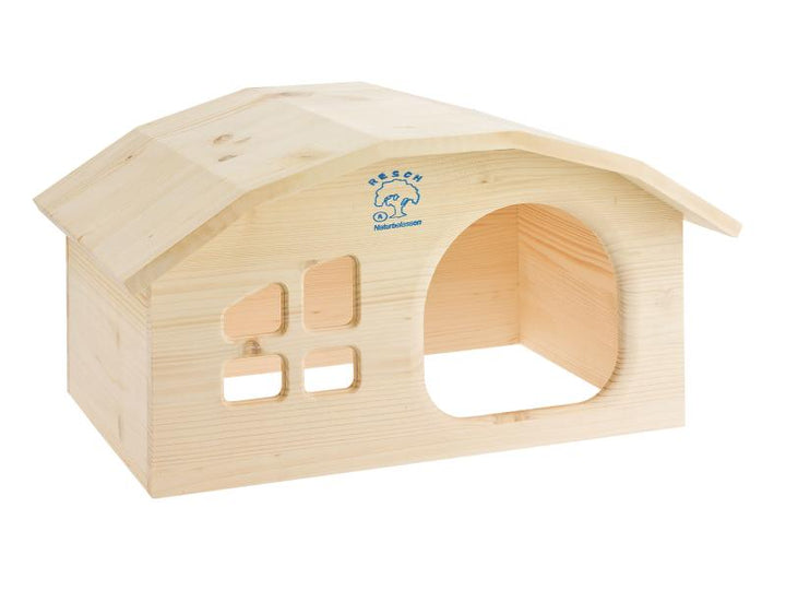 Das Wichtelhaus von Resch ist ein sehr geräumiges Haus für Kaninchen, Meerschweinchen, Degus oder Ratten, das sich durch sein schmuckes Design mit Fenster und extra grossem Eingang auszeichnet. Es besteht aus massivem Fichtenholz und wird fertig zusammengebaut geliefert. Das unbehandelte Fichtenholz ist garantiert frei von jeglichen schädlichen Stoffen und kann auch von Ihren Haustieren angeknabbert werden.