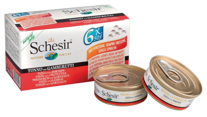 Die Qualität von Schesir, mit 100% natürlichen Inhaltsstoffen auch im Multipack: je 6 Dosen zu 50g, z.B. für übergewichtige Katzen oder solche, die gerne und oft verschiedene Geschmacksrichtungen in kleinen Portionen ausprobieren möchten.