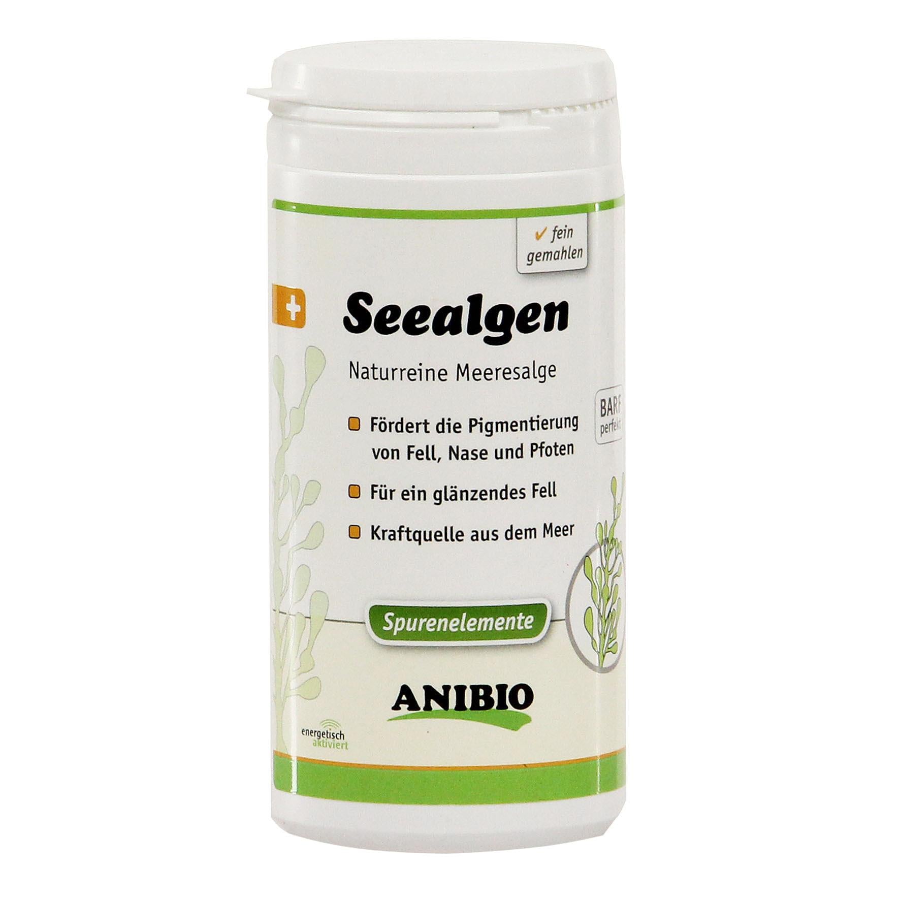 ANIBIO-Seealge ist ein reines Naturprodukt, gemahlen aus getrockneten Algen. Es ist besonders hoch konzentriert und effektiv wirksam. Grünes Algenmehl fördert in hervorragender Weise die Pigmentierung des Fells, der Augen, Nase und Pfoten. Diese natürliche Kraftquelle aus dem Meer enthält zudem viele wichtige Spurenelemente und wirkt förderlich auf die Verdauung und sorgt somit für bestmögliche Futterverwertung.