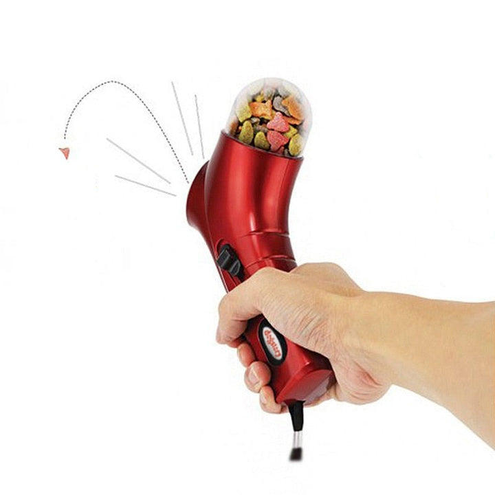 Schraube dazu einfach die transparente Abdeckung ab und fülle dort kleine Leckerlies ein. Deckel wieder drauf, Abzug drücken und schon kommen die kleinen Snacks heraus geschossen und dein Hund hat die Aufgabe sie zu fangen bzw. zu suchen.