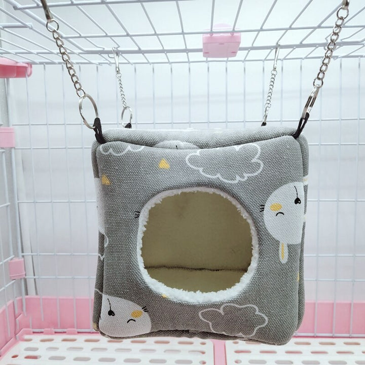 Ein kuscheliger Würfel als Hängematte! Es gibt wirklich immer mehr tolles Käfigzubehör für Nager, damit die es gemütlich und abwechslungsreich in ihrem Zuhause haben.