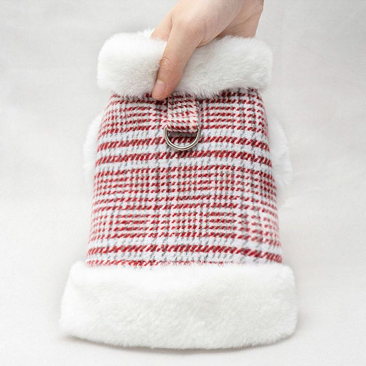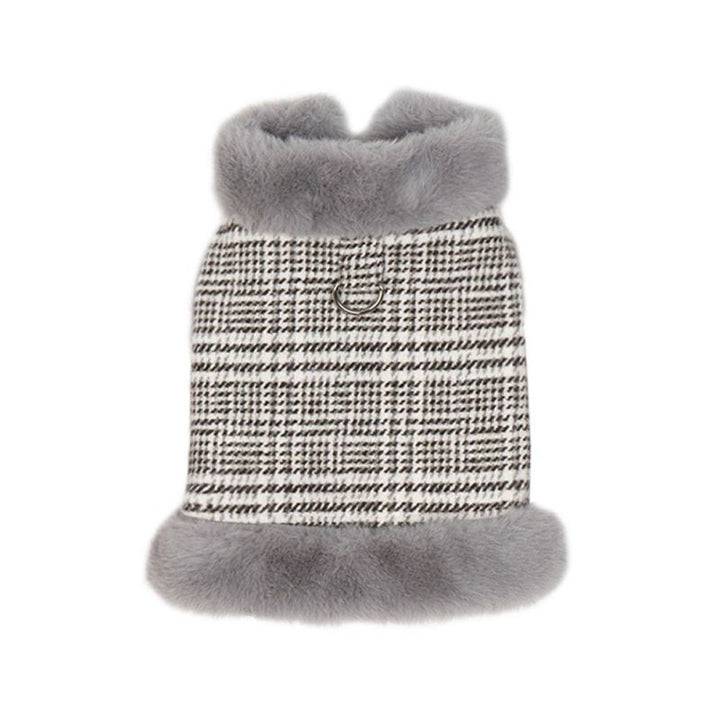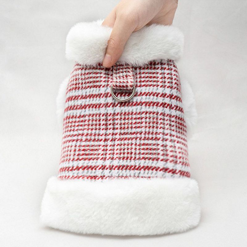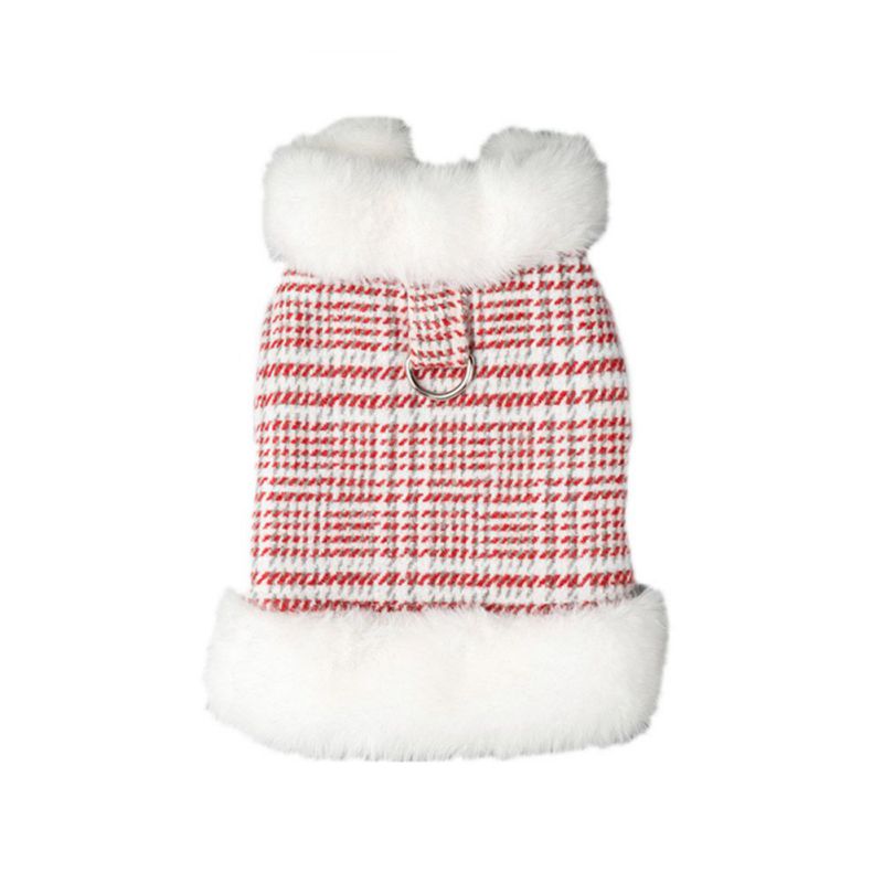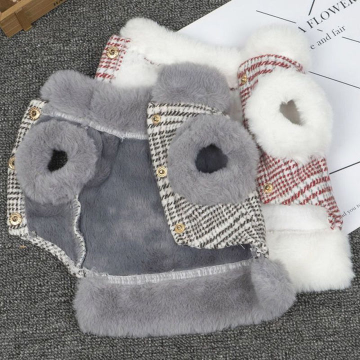 Der niedliche Mantel begeistert nämlich auch so. Das karierte Muster, welches in zwei verschiedenen Farben erhältlich ist, die goldfarbenen Druckknöpfe im Brustbereich sowie der Fake-Fur-Besatz am Hals, an den Beinabschlüssen und am Bündchen. Dieser Hundemantel ist perfekt für trockene Wintertage und kleine Hunde wie Chihuahuas, die wenig Fell haben, werden sich in dem karierten Wollmäntelchen pudelwohl fühlen.
