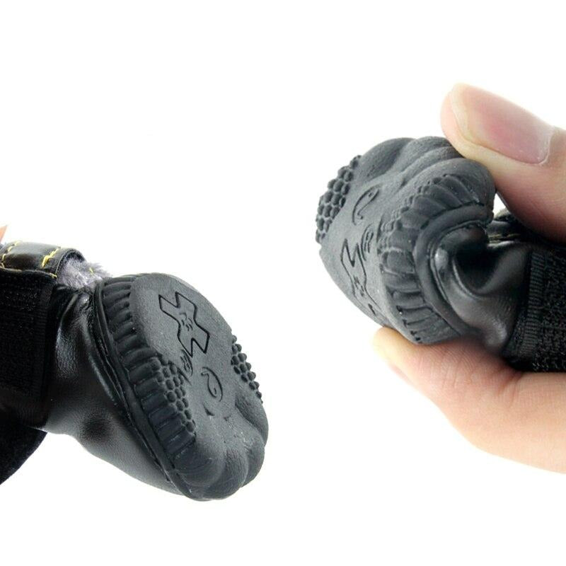 Queste scarpe, disponibili in un set di 4, sono resistenti alle intemperie e, quindi, ideali per proteggere le zampe del tuo cane durante certe lunghe escursioni, soprattutto su terreni accidentati, oppure quando, in inverno, bisogna uscire per i bisogni fisiologici del cane su strade ghiacciate e piene di sale.