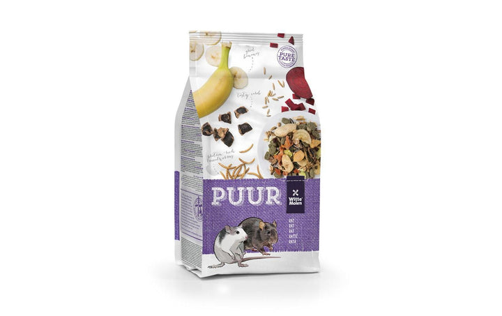 Bieten Sie Ihren Ratten ein Gourmet-Müesli: Puur von Witte Molen enthält sämtliche Nährstoffe für ein gesundes und glückliches Leben Ihrer Tiere. Die ausgewogene Zusammensetzung mit hochwertigen tierischen Ursprungs, angereichert mit Vitaminen und Spurenelementen, sorgt für eine hohe Vitalität Ihrer Tiere, während ein Anteil an Yucca gegen unangenehme Gerüche hilft. Präbiotika im Futter fördern zudem die Verdauung. Künstliche Konservierungs-, Farb- und Geschmacksstoffe hingegen sind im Gourmet-Müesli nicht enthalten.