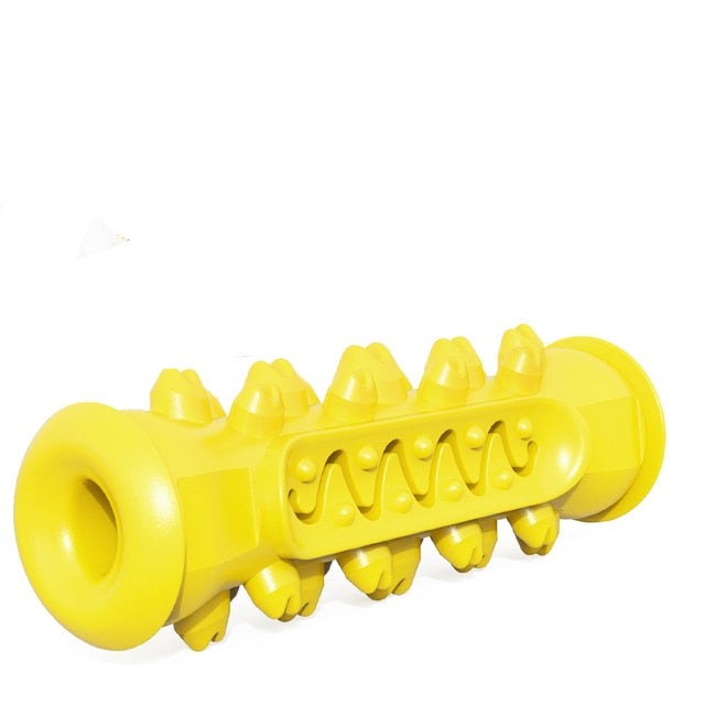 Wenn dein Hund das Kauspielzeug zwischen seinen Zähnen bekommt wirkt das Element mit seinen kleinen Noppen aus Gummi beim Kauen massierend im Maul und trägt somit verstärkt zur Mundhygiene deines Hundes bei. Ausserdem zeichnet sich das Material durch seine Widerstandsfähigkeit sowie Flexibilität aus und hält somit selbst den wildesten Kau-Attacken stand.